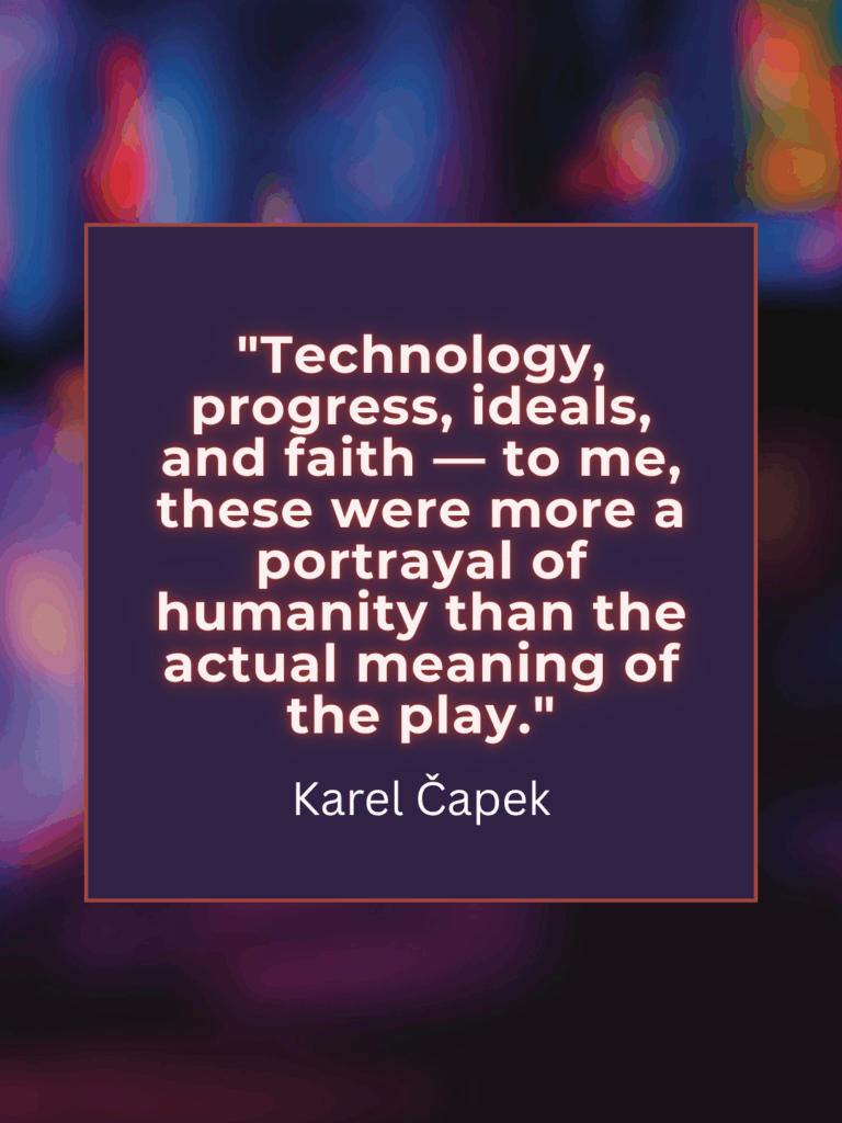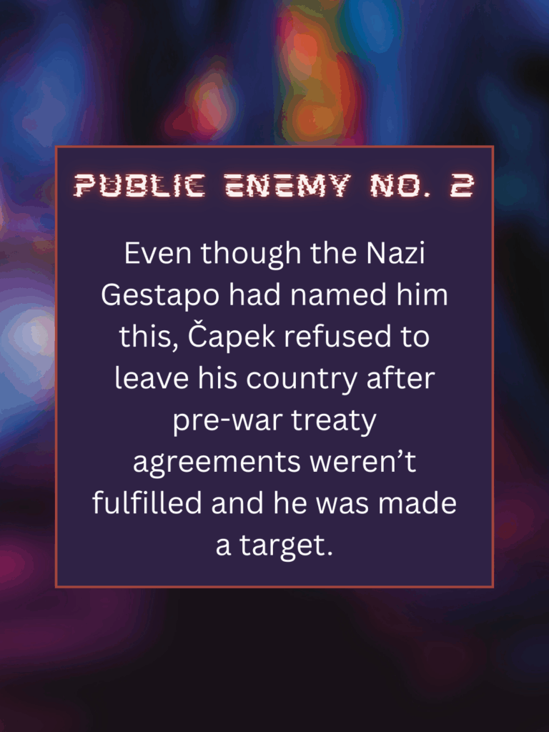 Čapek also expressed fear of social disasters, dictatorship, violence, the unlimited power of corporations, and greed. He tried to find hope, and a way out. From the 1930s onward his work became increasingly anti-fascist, anti-militarist, and critical of what he saw as “irrationalism”.